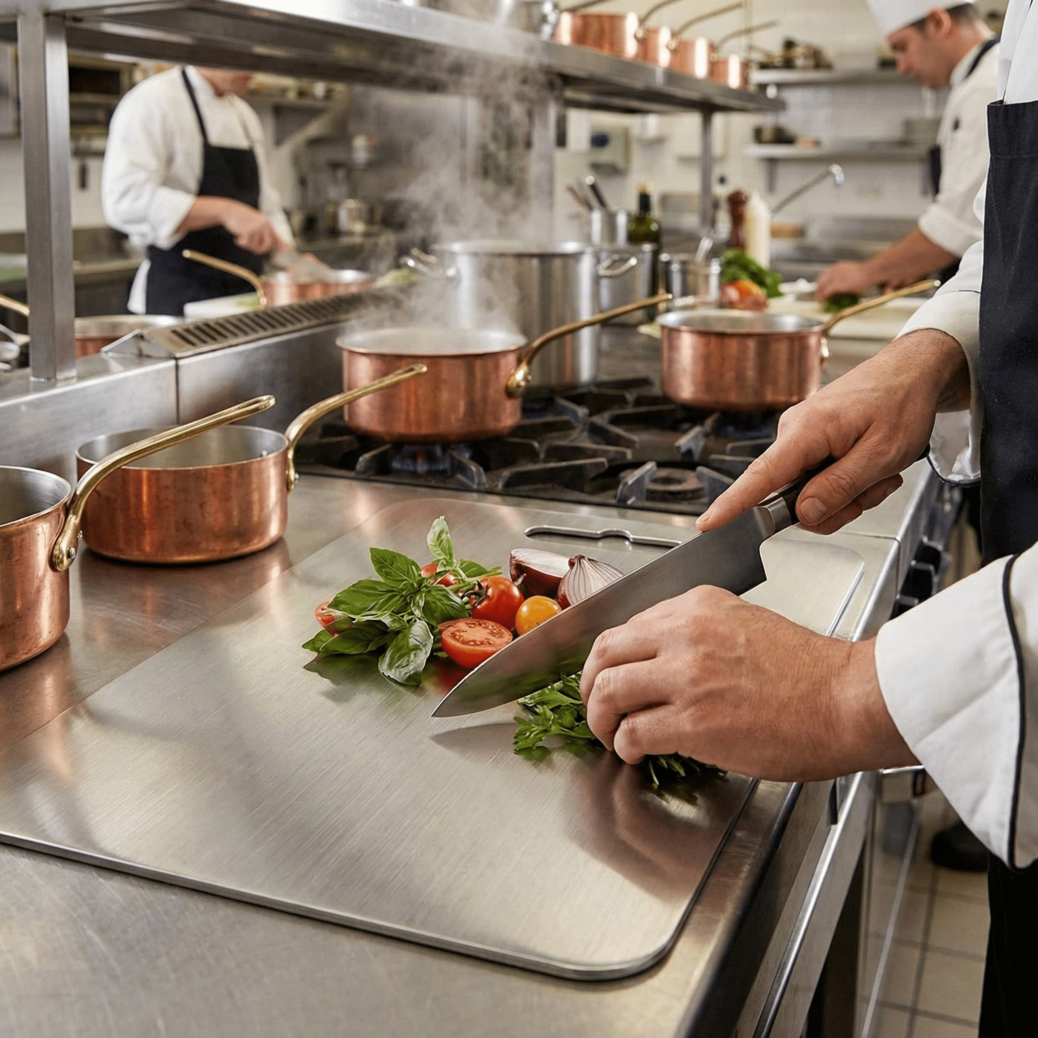 The innovative titanium cutting board that prevents bacterial growth, protects your knife edges, and maintains a pristine, odor-free surface forever.
