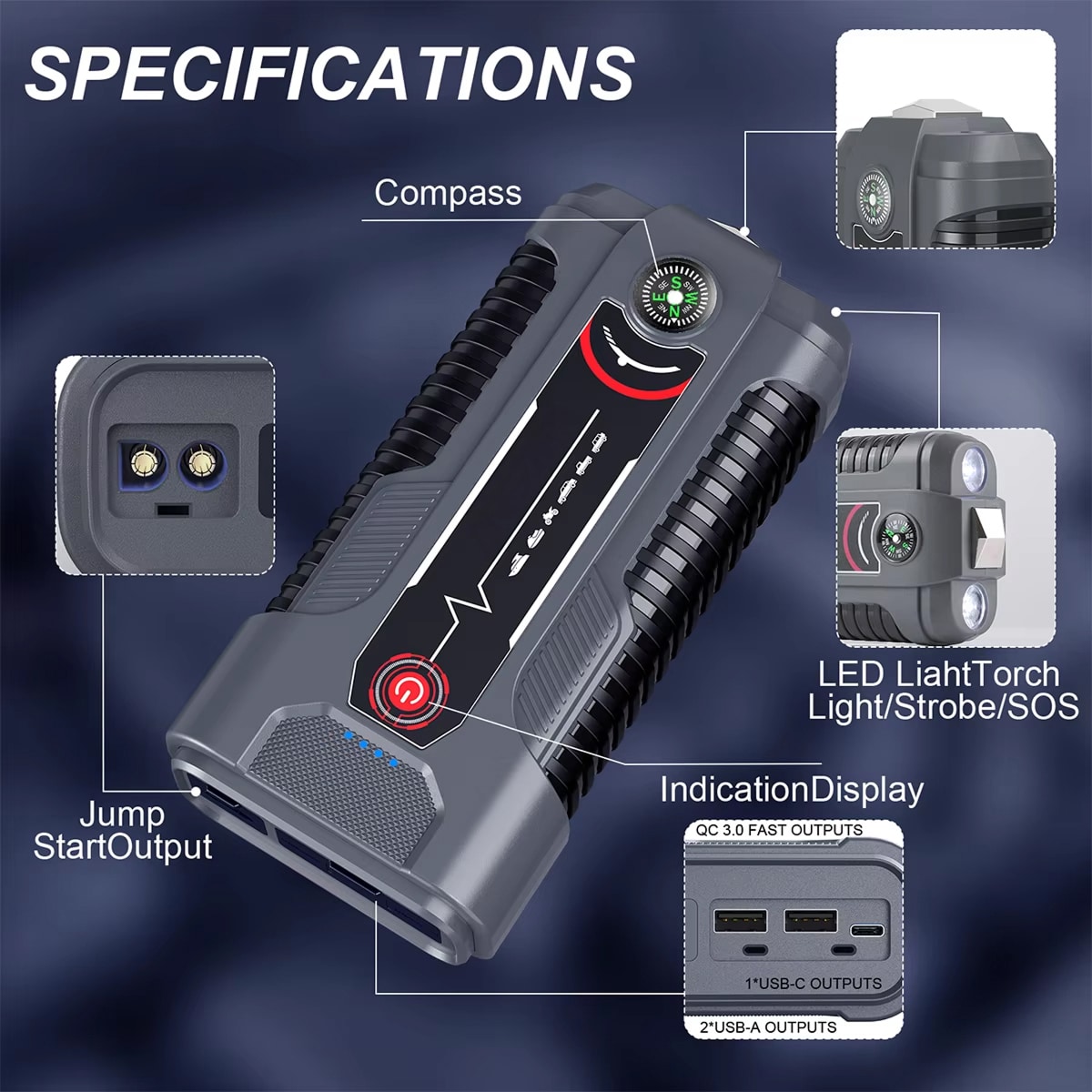 The built-in LED display shows real-time battery capacity and power status. When the indicator drops below 25%, simply recharge the unit using the included cable to maintain optimal performance for emergencies.