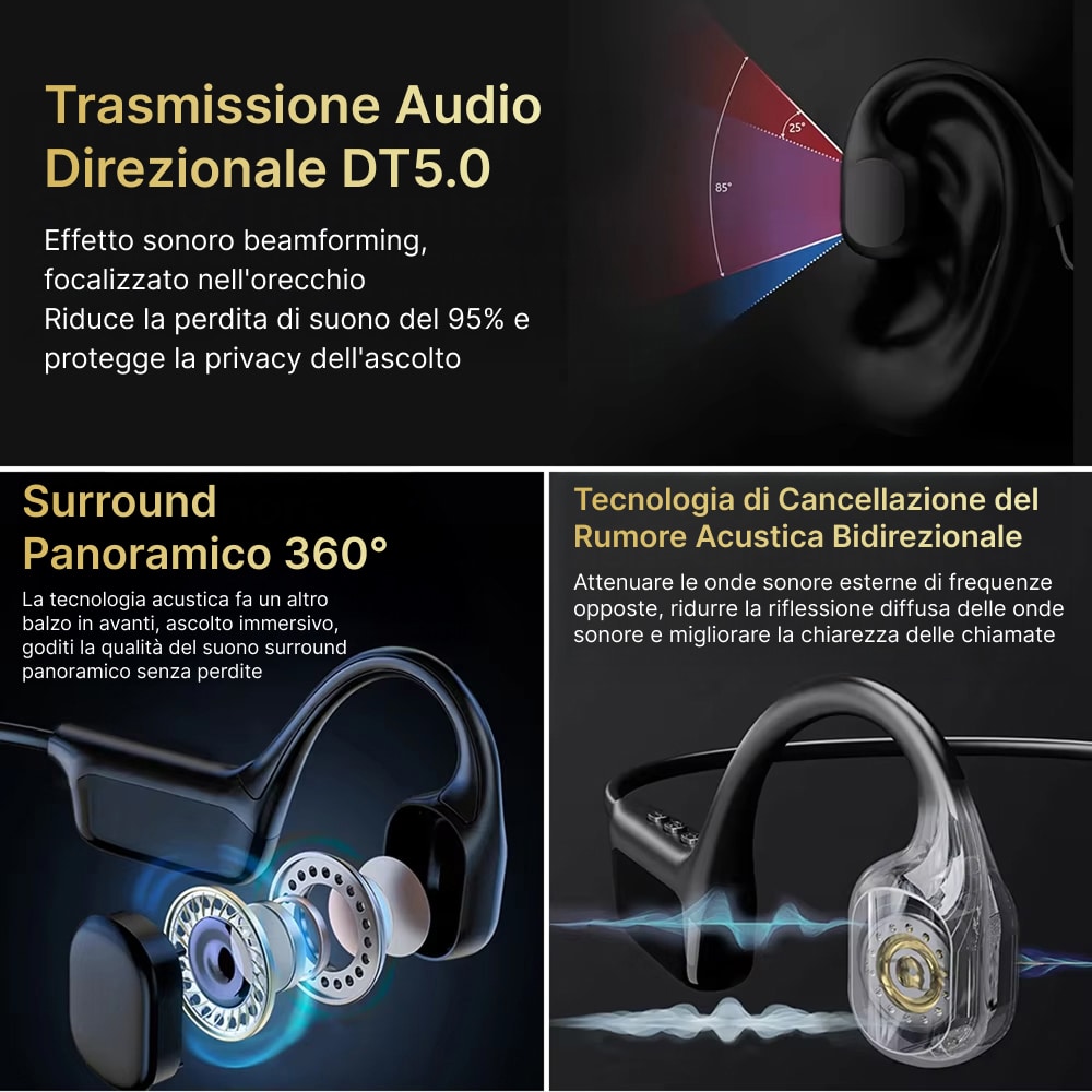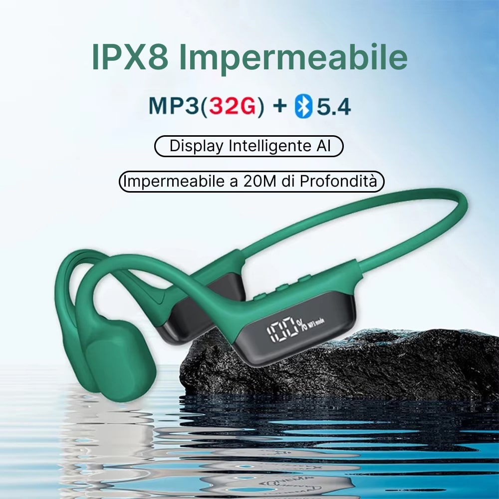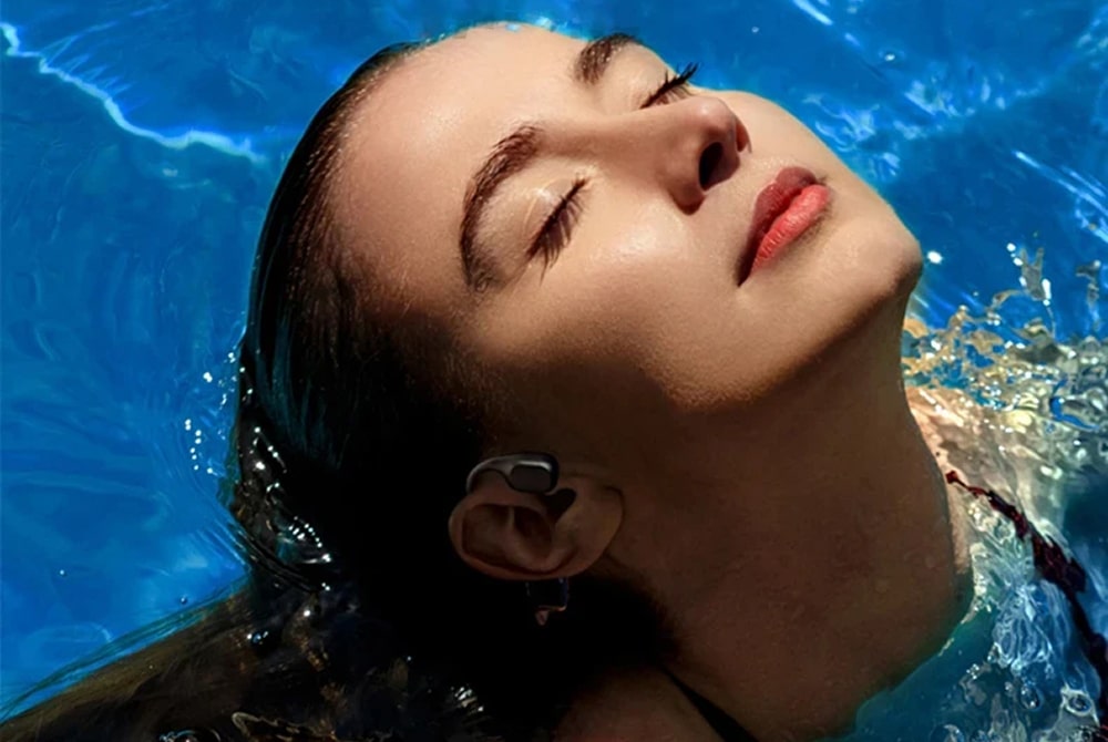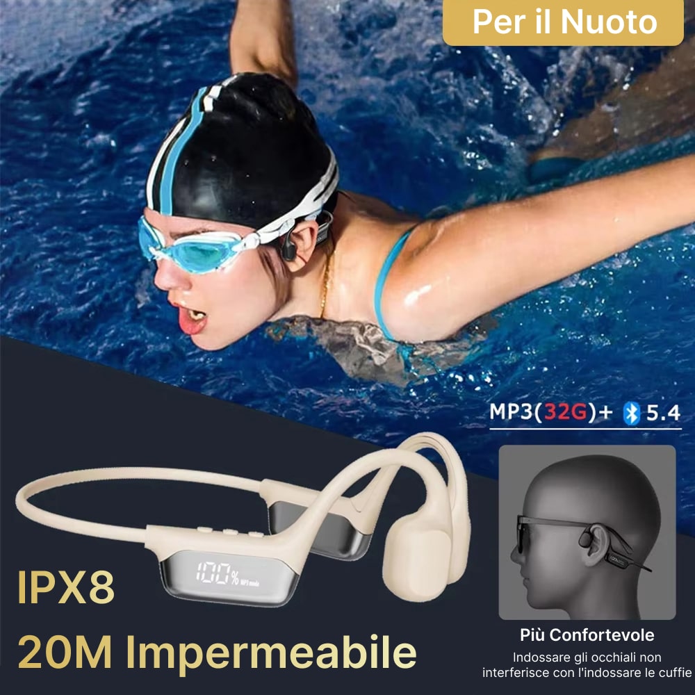 Bone conduction transmits sound vibrations through your cheekbones directly to your inner ear, bypassing water-filled ear canals. This technology provides clear audio even when fully submerged during swimming activities.