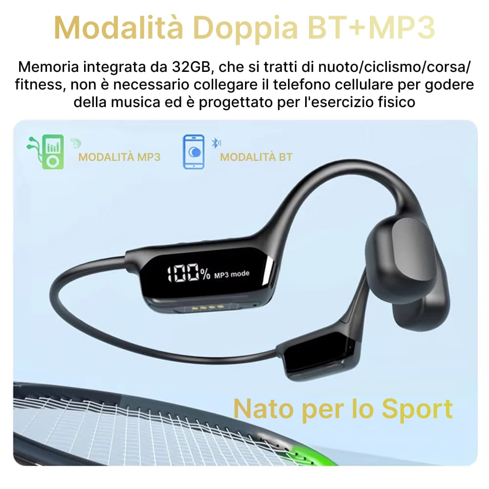 Bluetooth signals don't transmit underwater, so use the integrated 32GB MP3 storage for swimming. Bluetooth 5.4 connectivity works perfectly for above-water activities like running, cycling, or gym workouts.