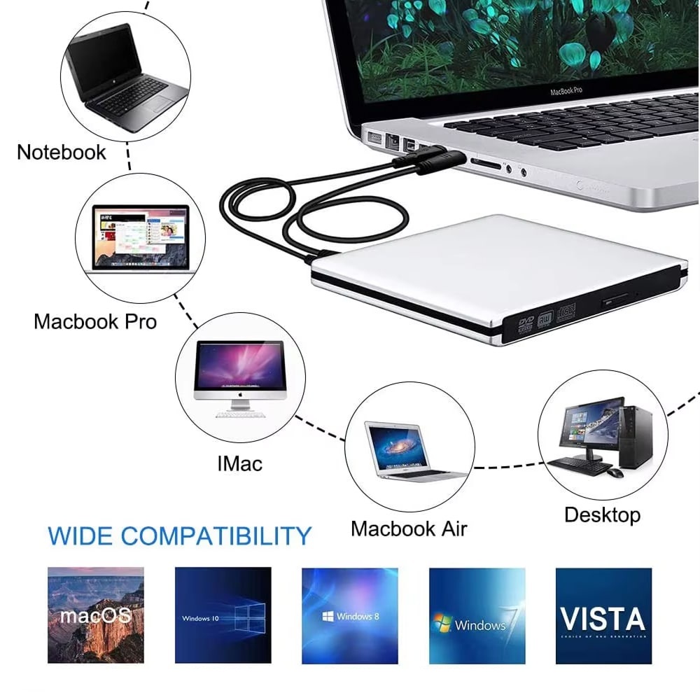 Extremely portable at just a few ounces with slim aluminum design. It fits easily in laptop bags or backpacks, making it ideal for business travelers, students, or anyone needing disc access on the go.