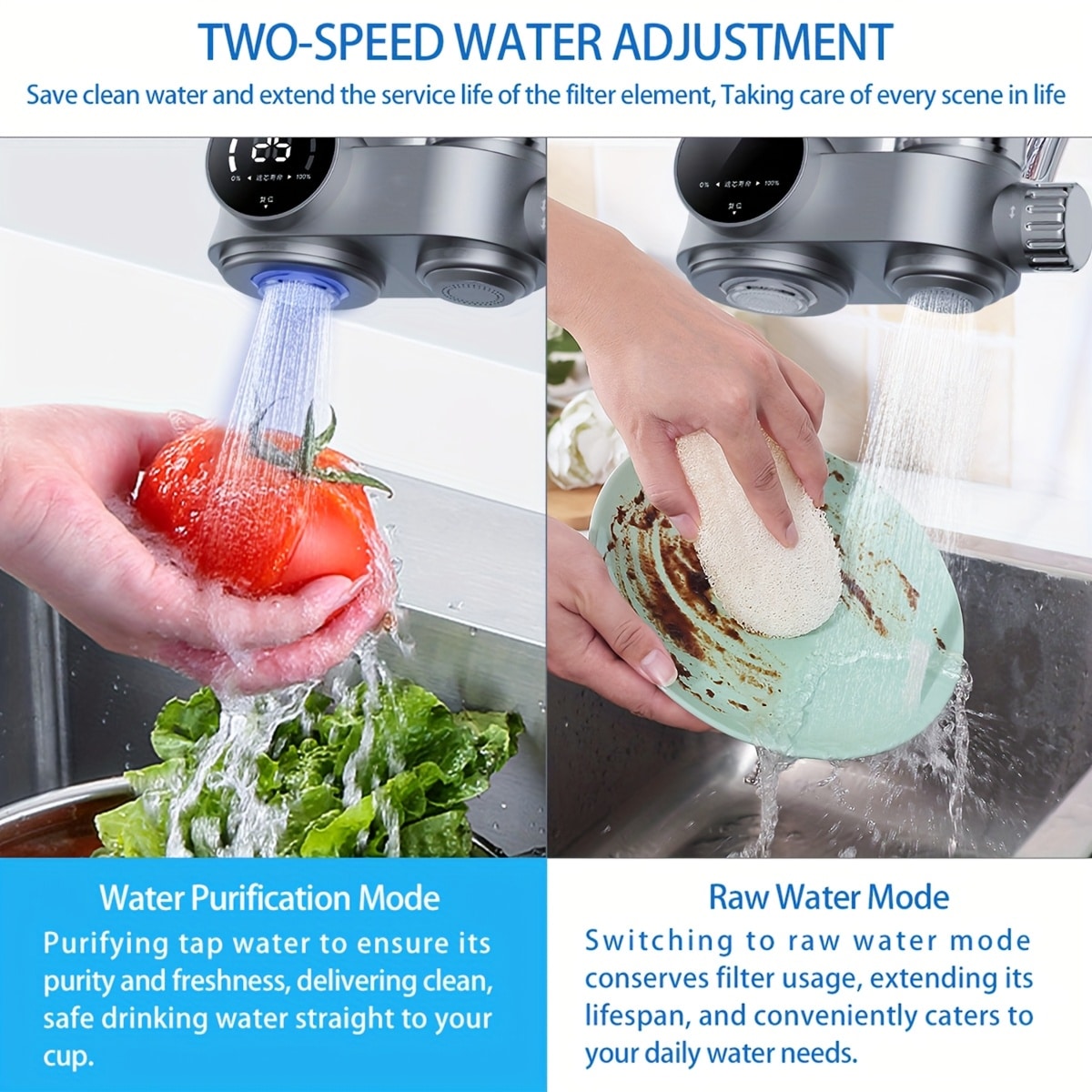 Simply rotate the screw knob to switch modes. Position down delivers purified water through the filtration system for drinking and cooking. Position up provides pressurized raw water for washing dishes and hands, extending your filter's lifespan.