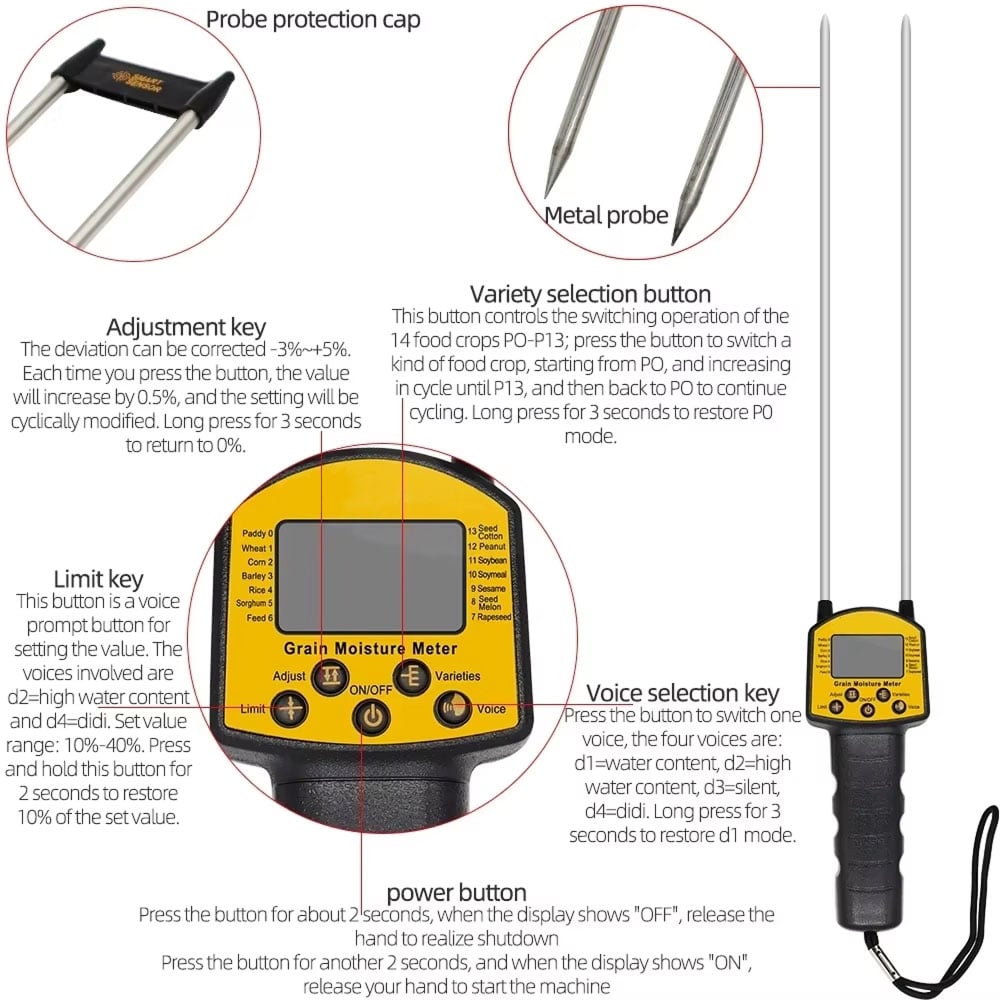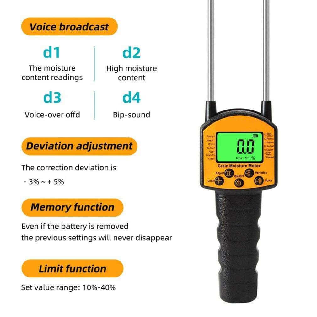 Advanced calibration technology with -3% to +5% deviation adjustment eliminates inconsistent readings. The Hygromux Grain Moisture Tester maintains accuracy across varying grain conditions while smart memory function retains your settings, ensuring reliable measurements every single time.