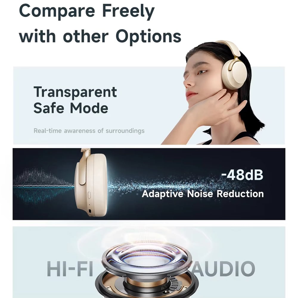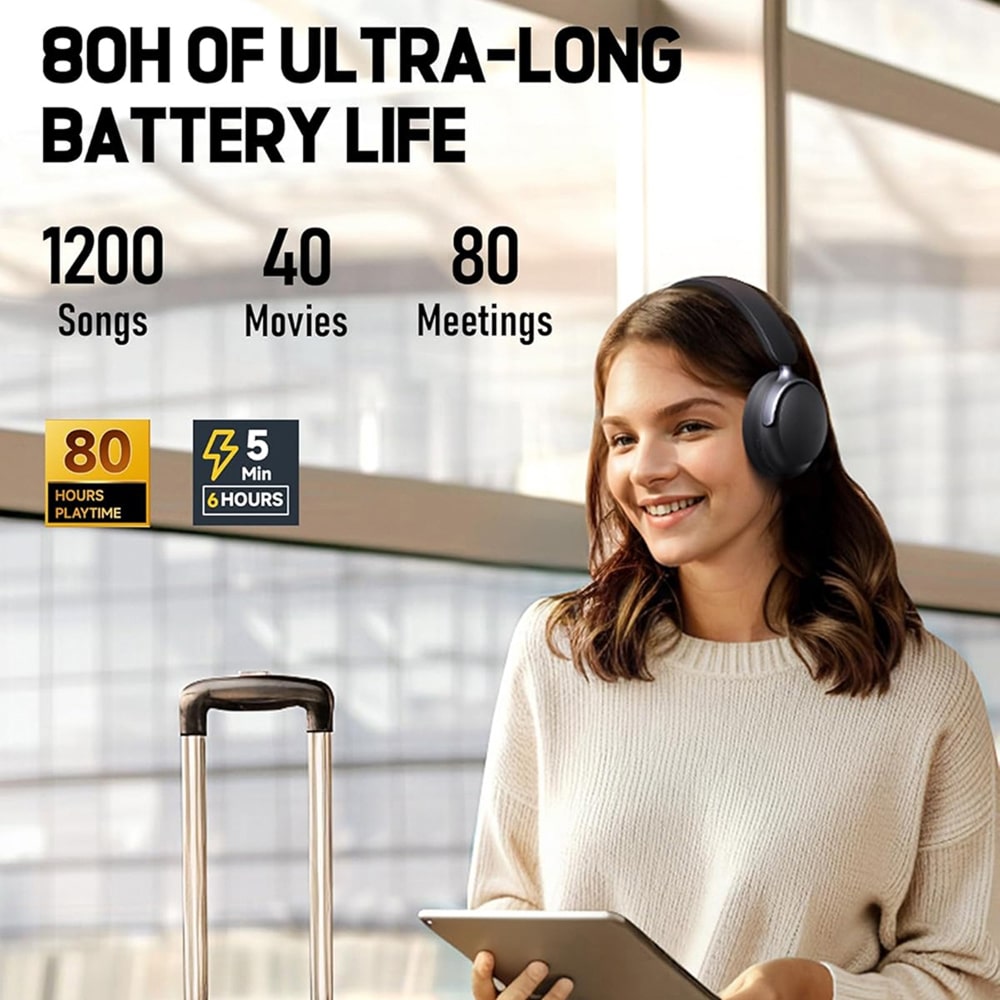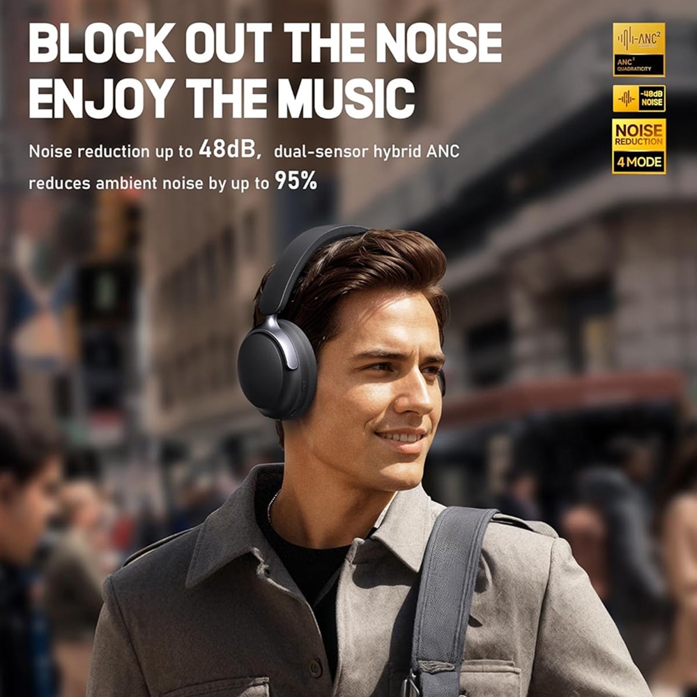 The hybrid ANC technology blocks up to 95% of ambient noise across all frequencies, perfect for flights, commuting, and focused work.