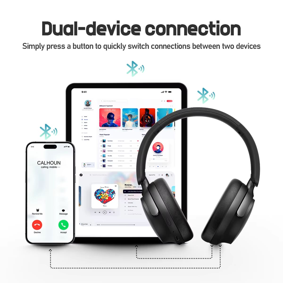 Yes, the advanced Bluetooth 5.4 technology supports simultaneous connection to two devices, allowing seamless switching between your laptop for work calls and smartphone for music without manual reconnection, enhancing productivity and convenience throughout your day.
