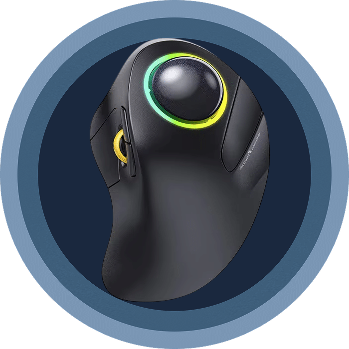 The 44mm trackball allows you to control cursor movement with just your index finger, eliminating repetitive wrist and arm motions that cause strain and fatigue during extended use.
