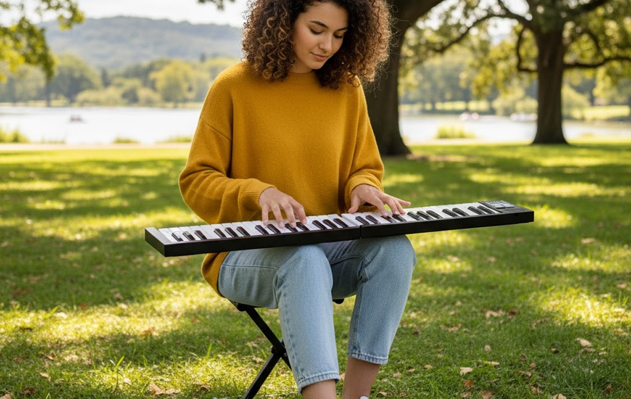 While primarily designed for headphone use, the keyboard includes standard audio output that's compatible with most external speakers and amplifiers for performance or group learning situations.