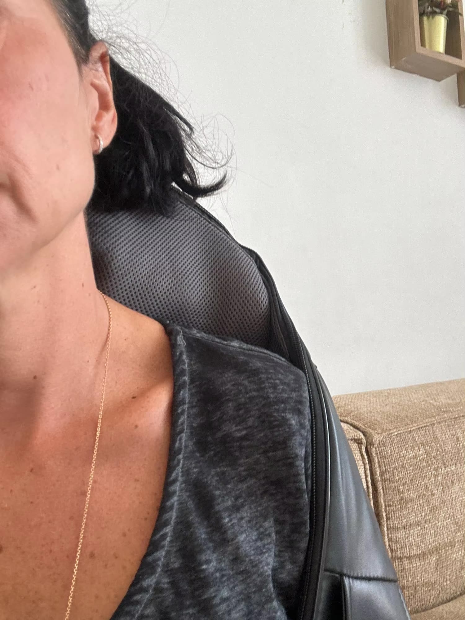 The adjustable intensity and heat settings are perfect for my needs. I use it on flights, in hotels, and at home. The breathable material keeps me comfortable during extended sessions.
