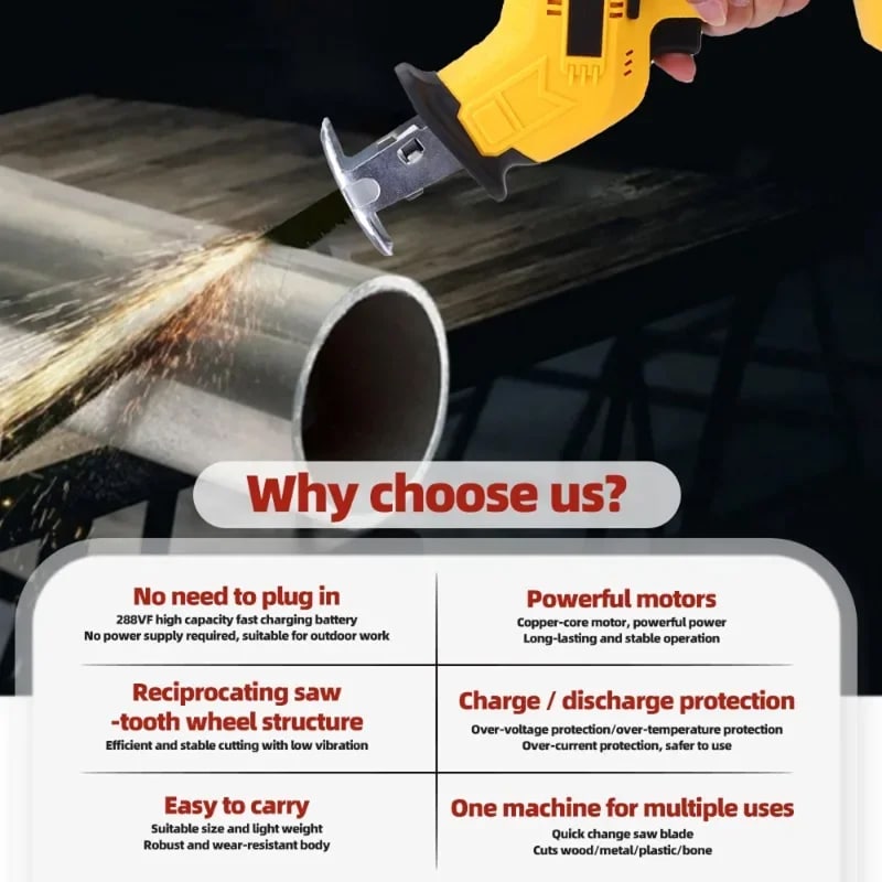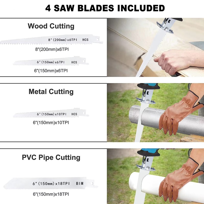 The Sawzapix cuts wood, metal, PVC pipes, plastic, ceramic, tile, bamboo, and tree branches. With the four included professional blades, you can tackle virtually any home DIY or outdoor cutting project with ease.