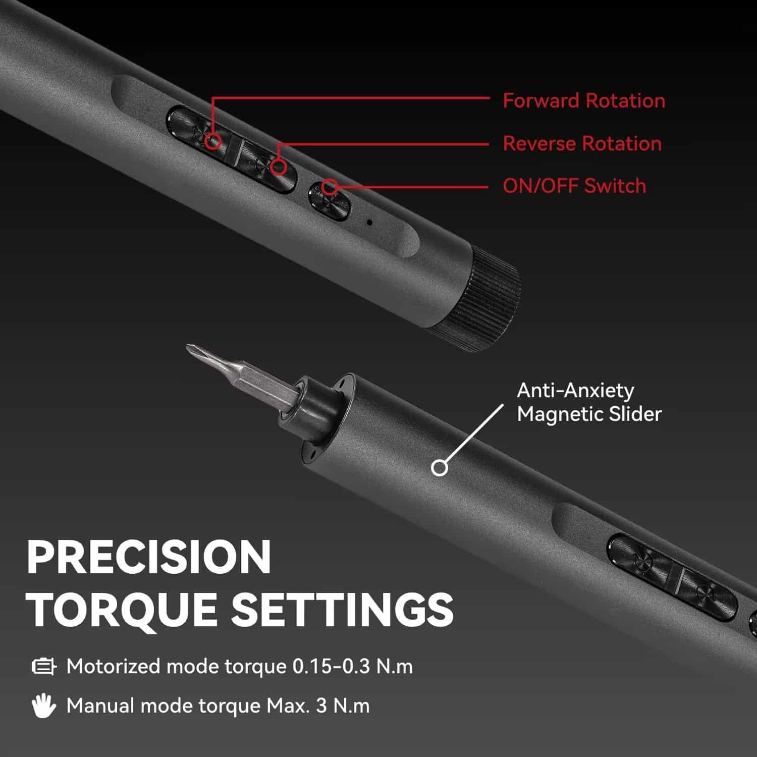 Absolutely. The adjustable torque settings range from delicate 0.15 Nm for tiny electronics screws to robust 3 Nm manual torque for furniture and larger assemblies, making it truly versatile.