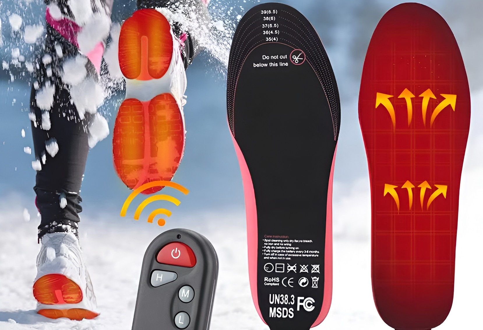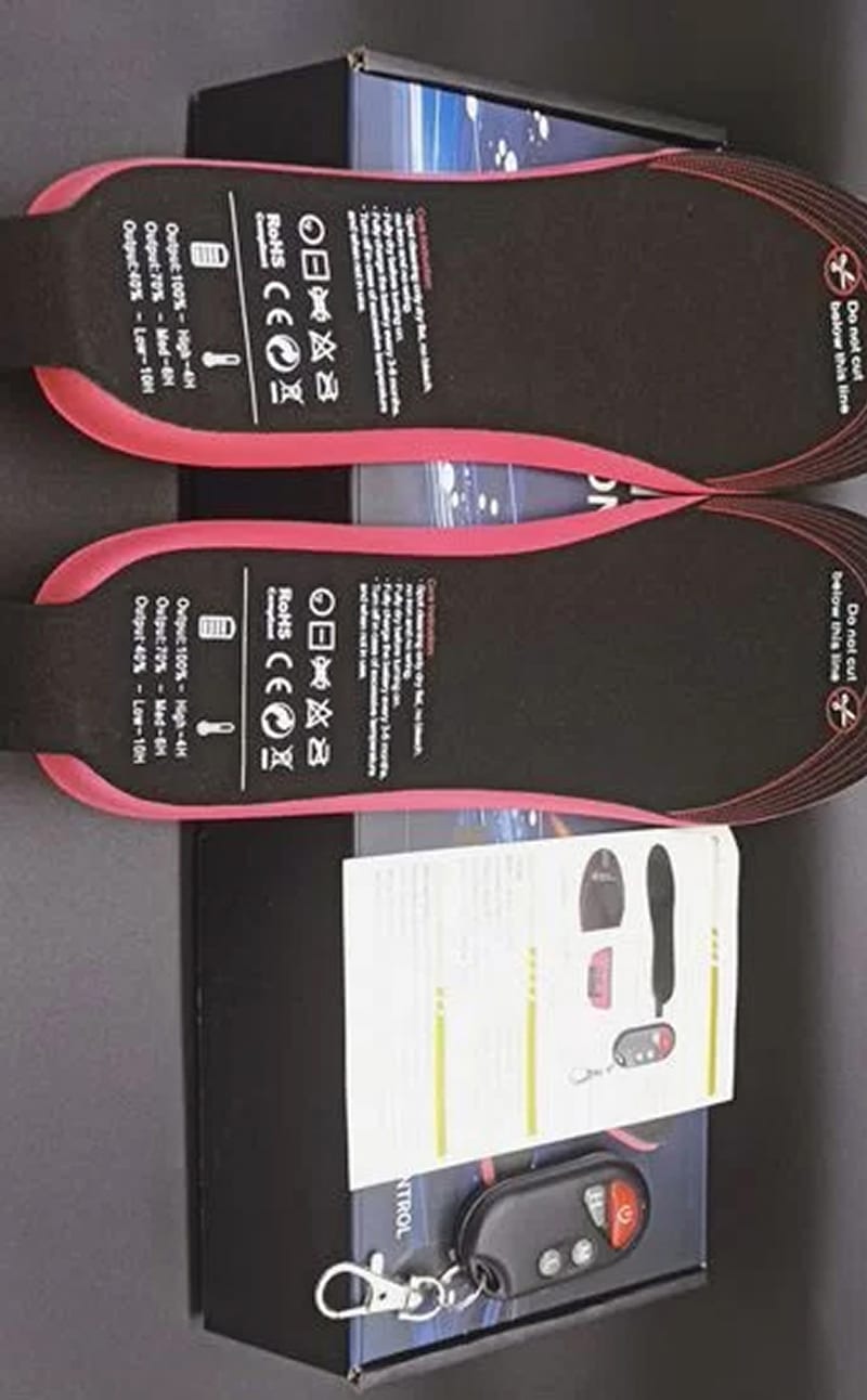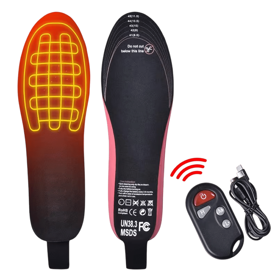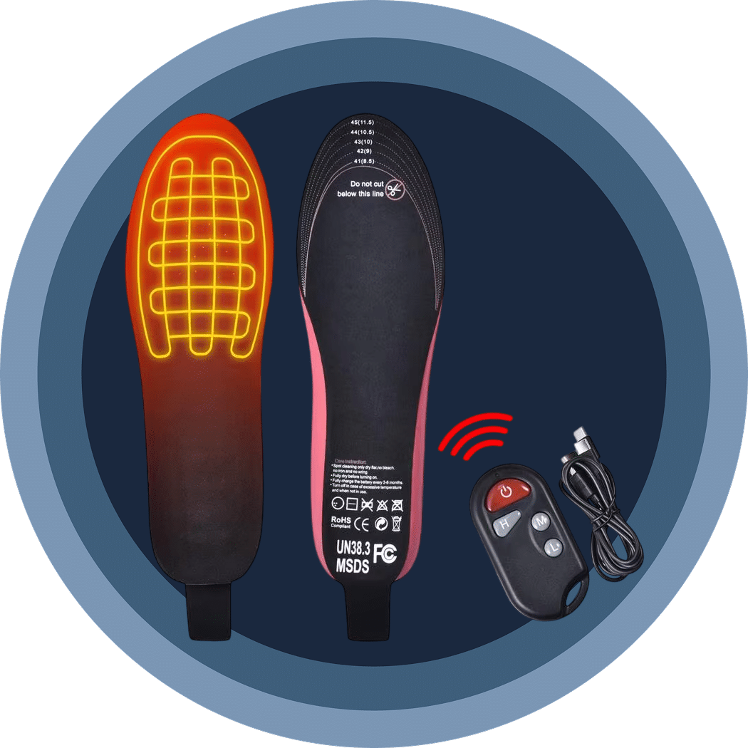 Remove the battery packs before cleaning. Gently wipe the insoles with a damp cloth and mild soap, then air dry completely before reinserting batteries. Never submerge in water or machine wash.