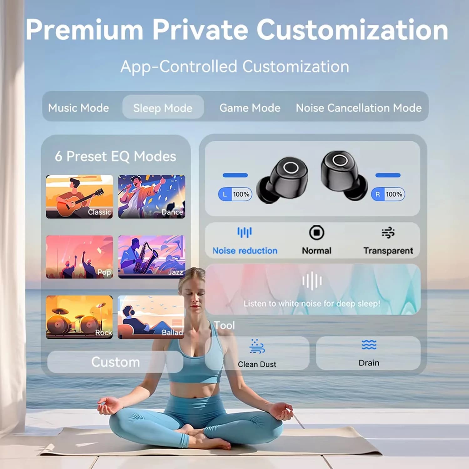 The comprehensive app offers three modes (sleep, music, game) and six preset EQ modes including Classic, Pop, Jazz, Rock, Dance, and Ballad. You can also create custom settings tailored to your preferences.