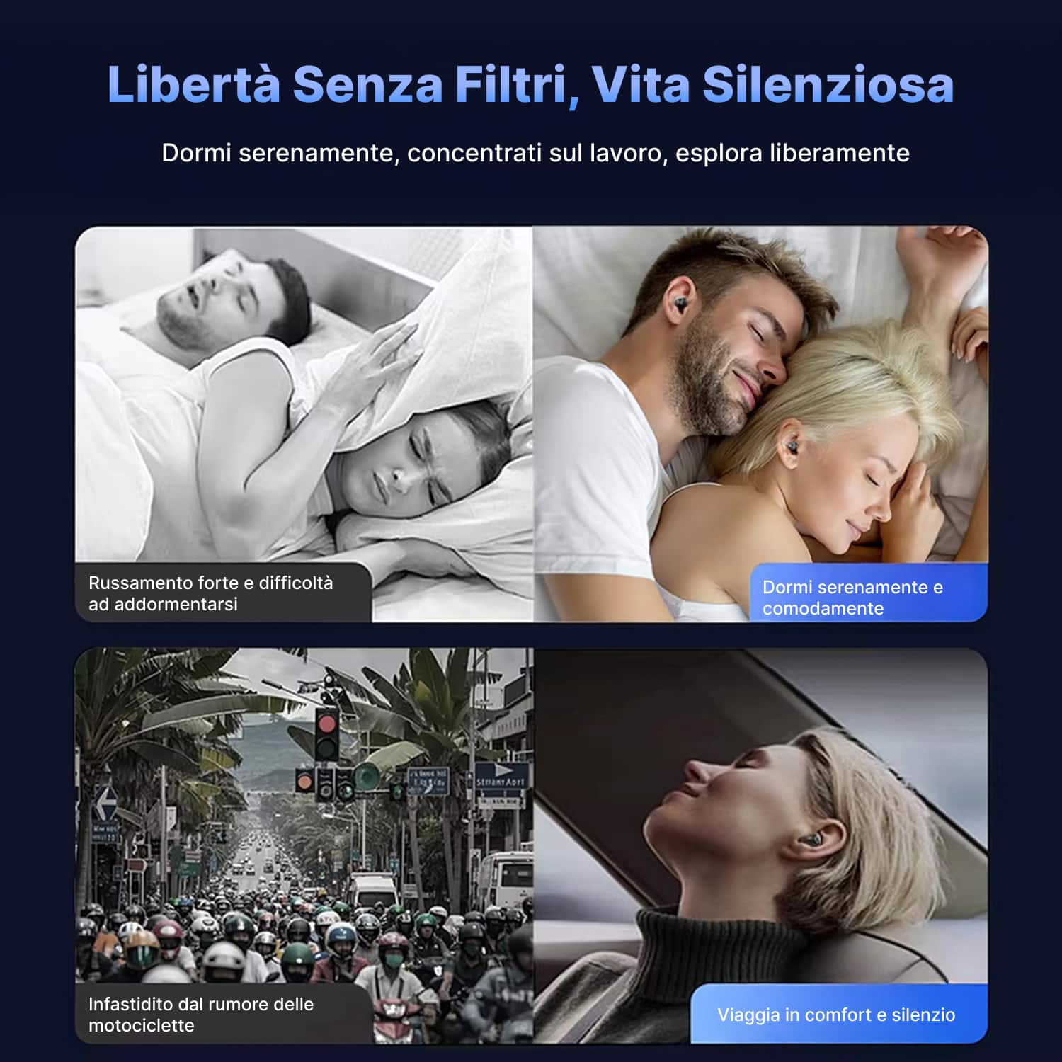 La tecnologia ANC da 40dB blocca efficacemente russamenti intensi e rumori ambientali. Studi con 500 utenti mostrano 80% di miglioramento nella qualità del sonno dopo una settimana di utilizzo regolare.