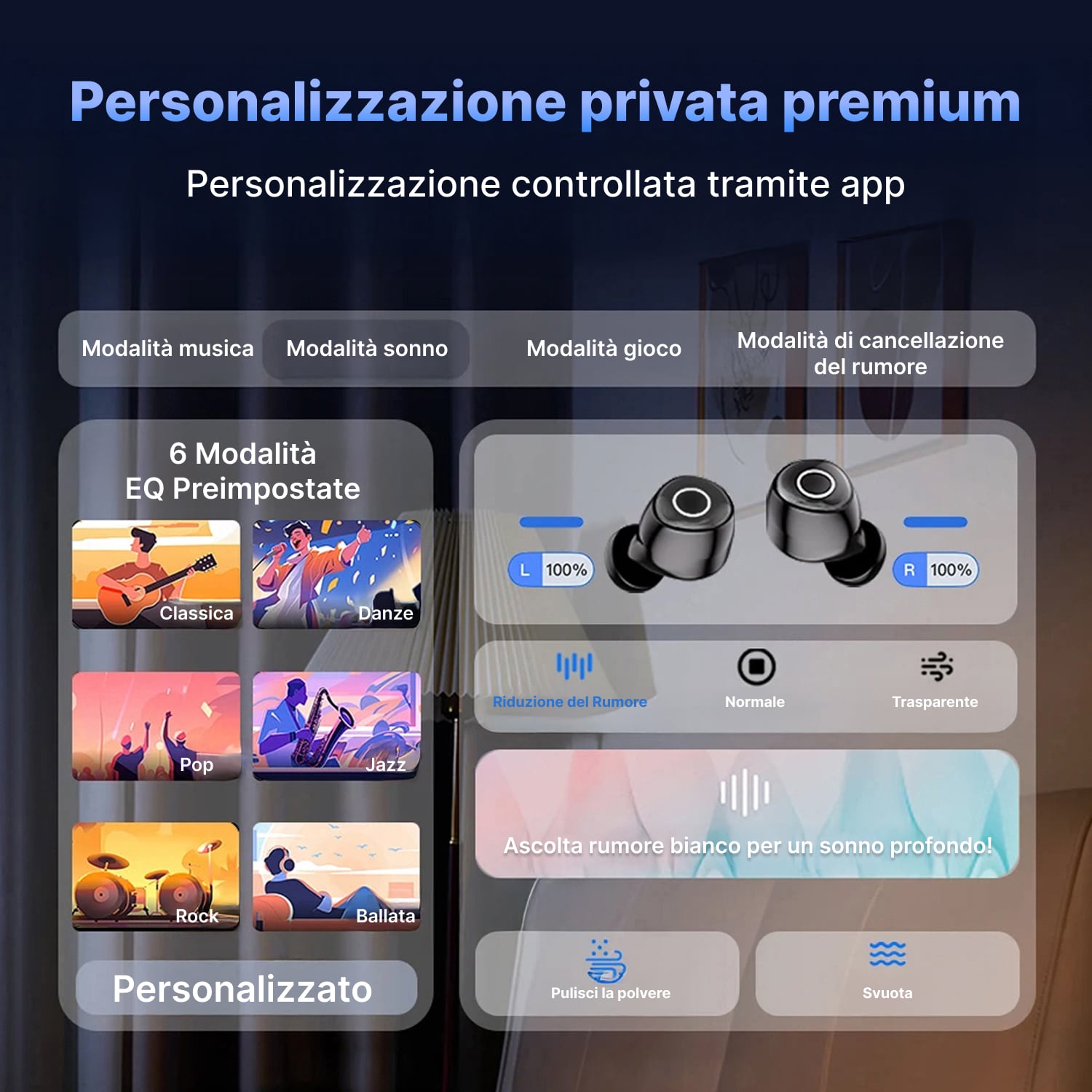 Certamente. Oltre alla modalità sonno, gli Snuzipods offrono modalità musica e gioco con sei EQ preimpostati. Bluetooth 6.0 garantisce connessione stabile per chiamate nitide e streaming audio di qualità superiore.