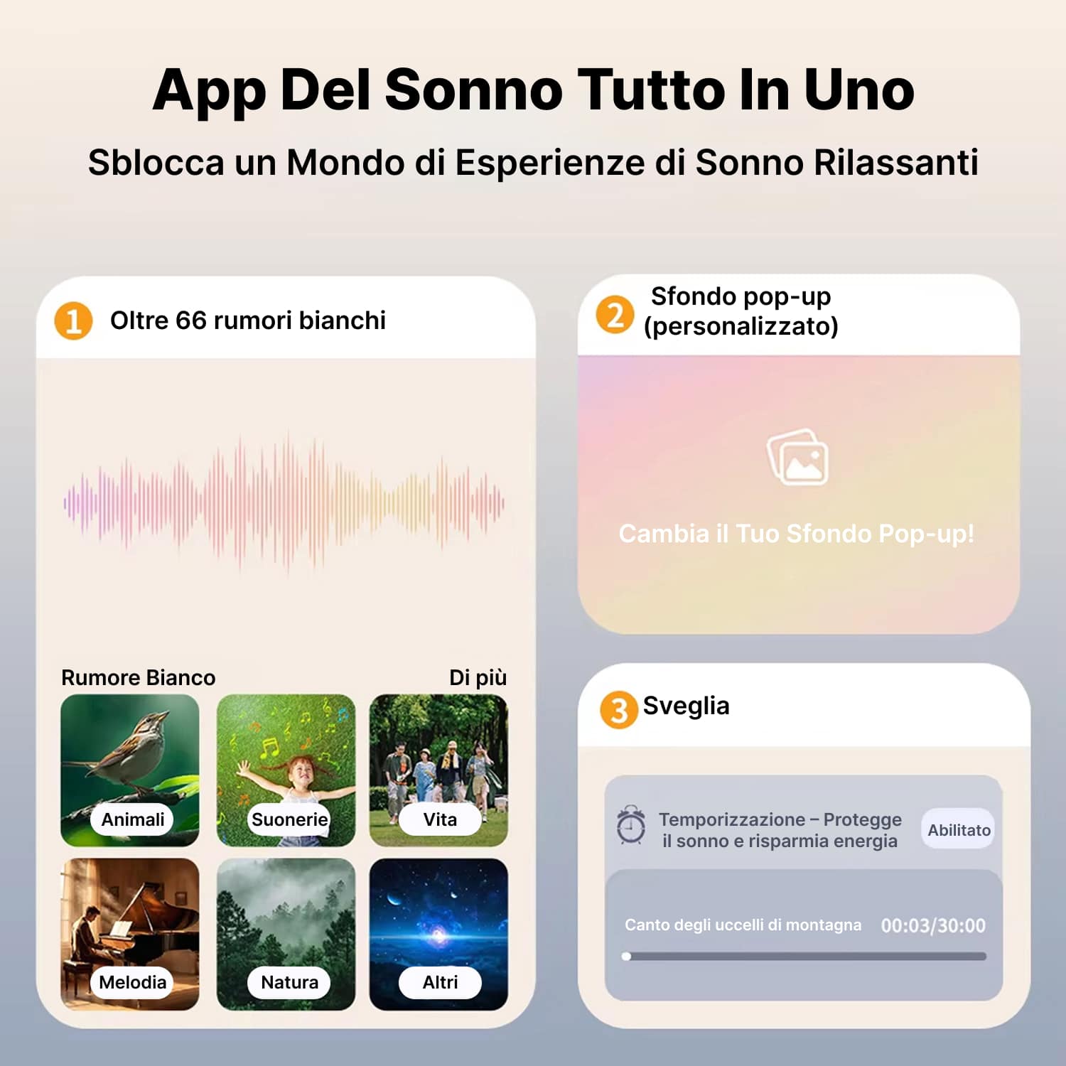Sì, l'app dedicata offre vasta libreria di suoni naturali: ruscelli montani, grilli, uccelli. Puoi creare mix personalizzati e salvare le tue combinazioni preferite per esperienze sonore uniche e rilassanti.