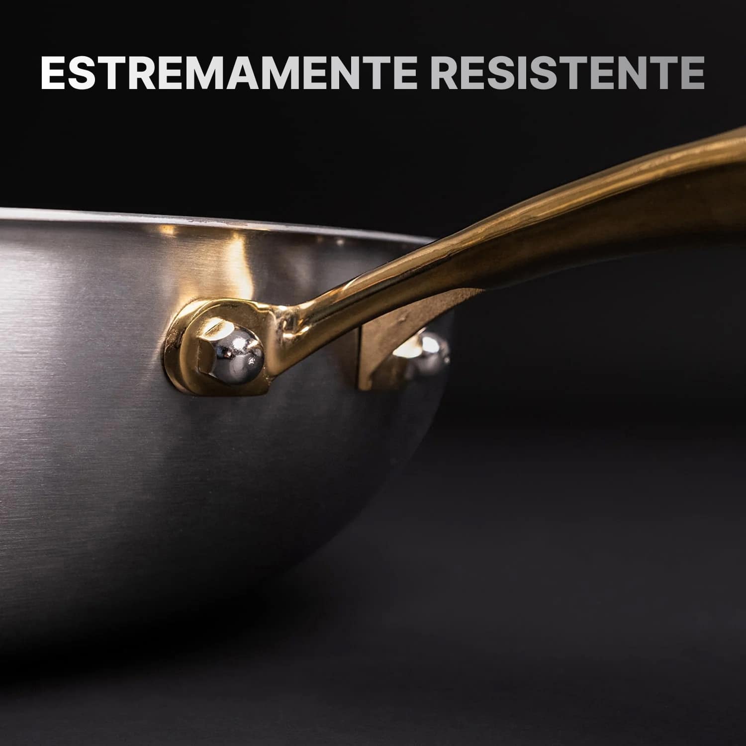 Assolutamente sì. Il titanio puro tollera temperature estremamente elevate senza degradarsi o rilasciare sostanze. È perfetta per rosolature ad alta temperatura e può essere utilizzata anche in forno senza problemi.