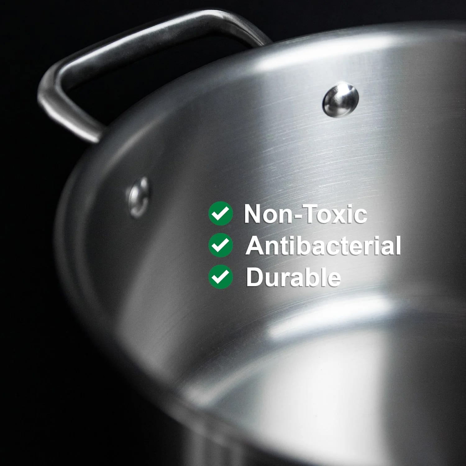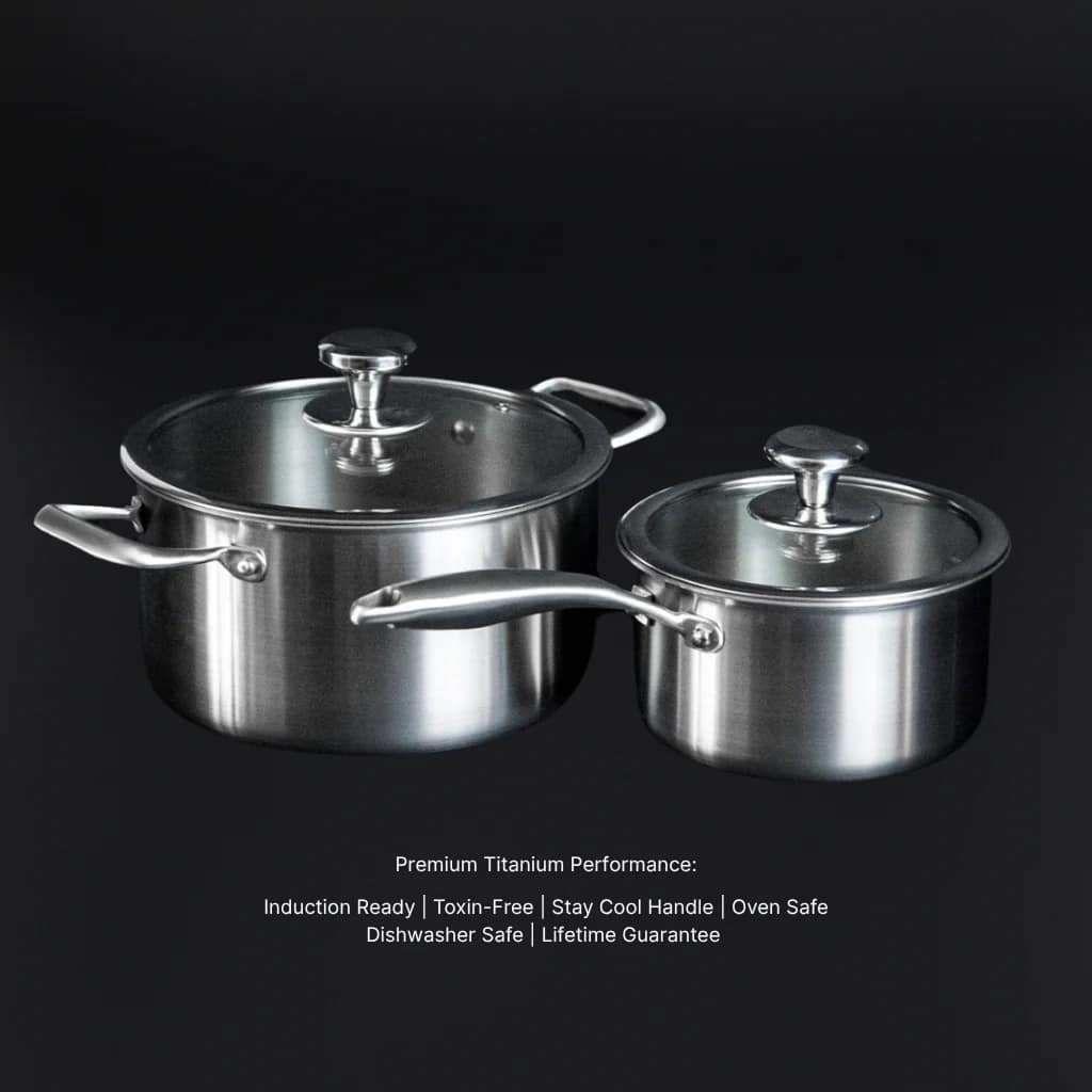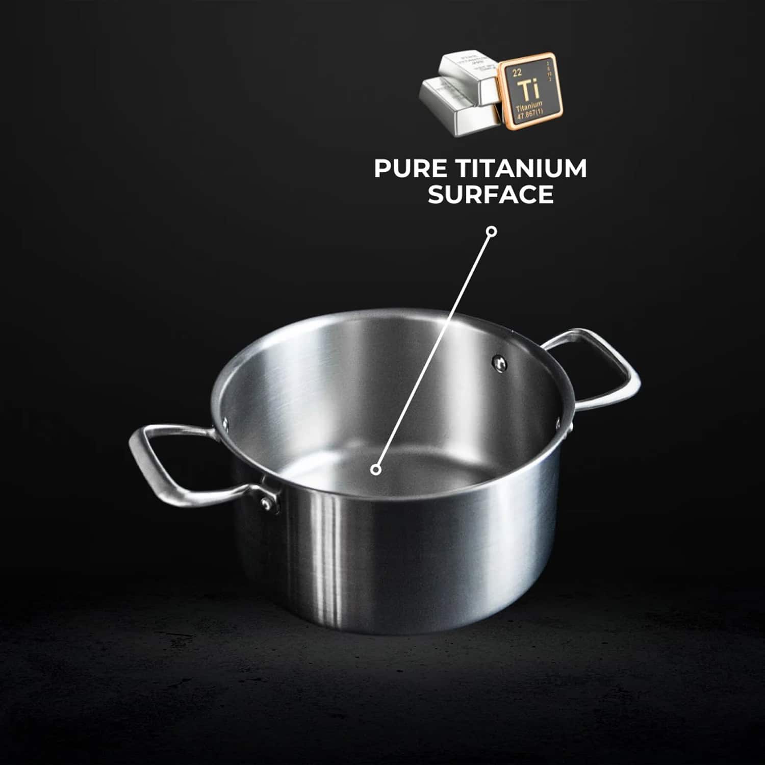The TiPotrixi Titanium Pot features pure titanium construction that retains more nutrients, heats faster, and is completely toxin-free unlike traditional stainless steel which can leach metals into food.