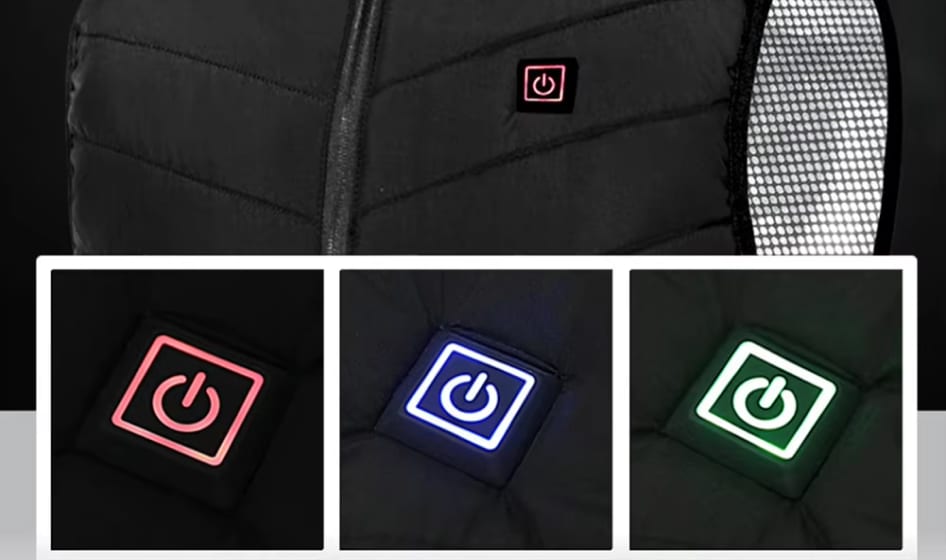 I tre livelli offrono temperature di circa 35°C (basso), 45°C (medio) e 54°C (alto). Puoi facilmente passare tra i livelli premendo il pulsante di controllo sul gilet.
