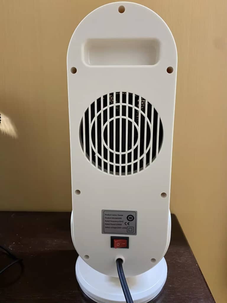 The 1200W PTC ceramic heating element begins producing warmth within 3 seconds and effectively heats most rooms within 15-20 minutes.