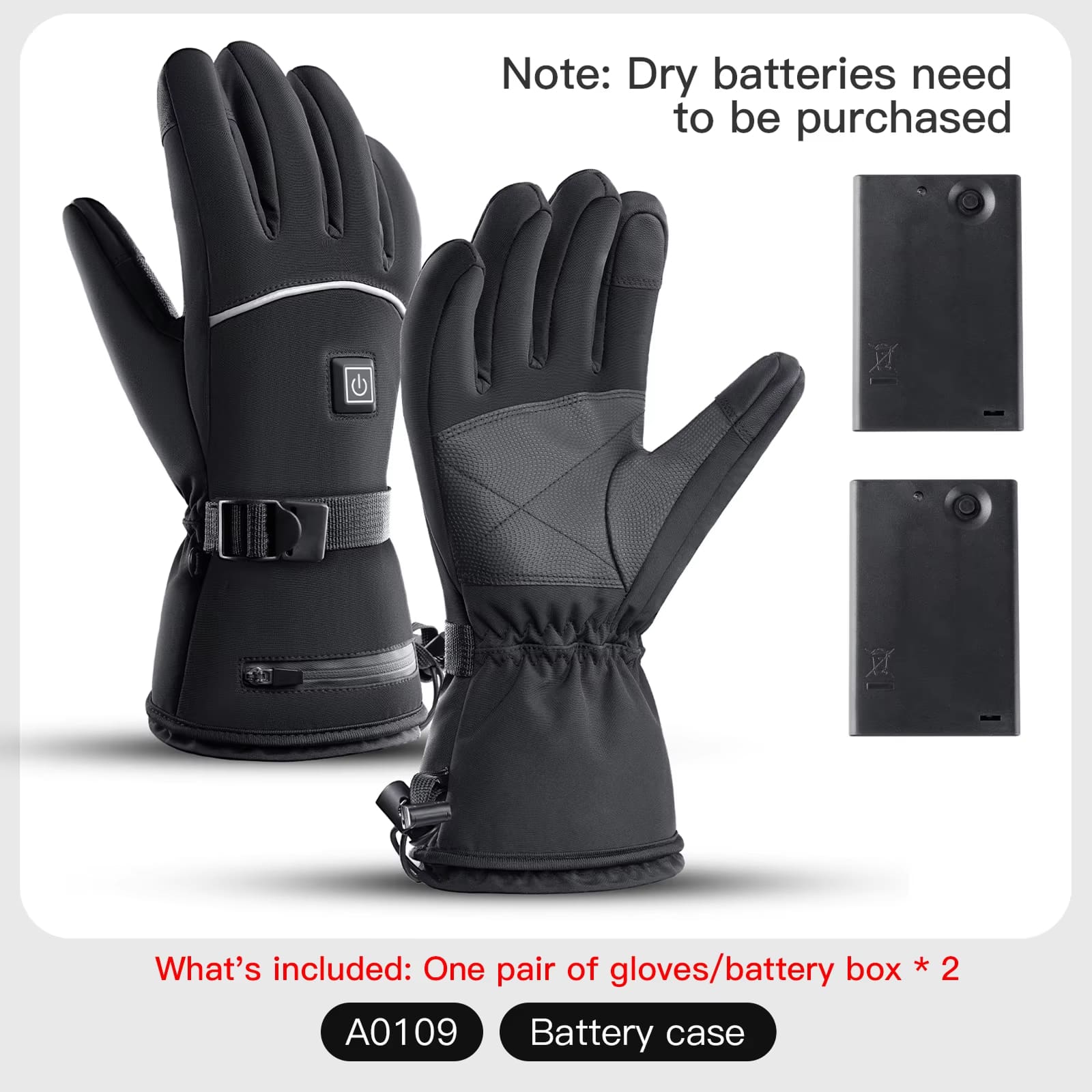 Batteries are not included in the package. The gloves feature a dedicated battery pocket designed to hold rechargeable battery packs. You'll need to purchase compatible rechargeable batteries separately for operation.