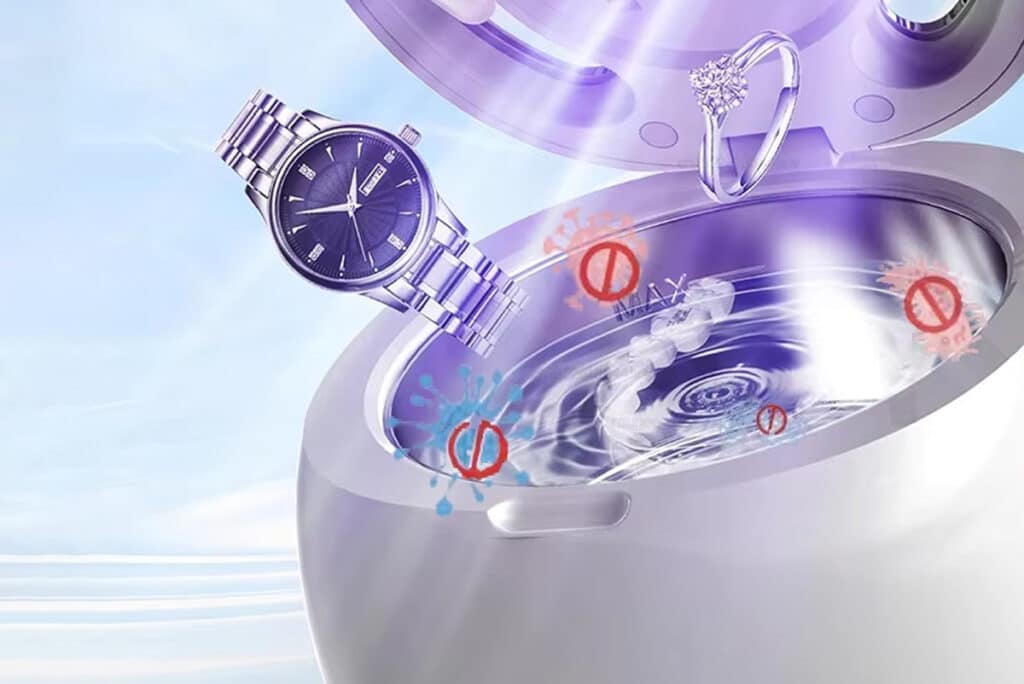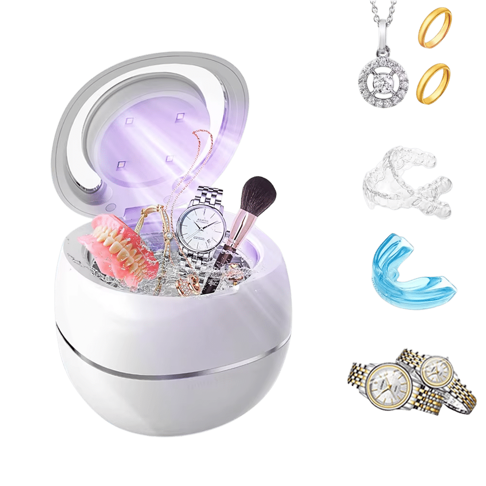 The ZyraRetiq uses 42Khz ultrasonic sound waves to create cavitation bubbles that scrub away debris, combined with UV light to kill 99.99% of bacteria for a thorough clean and sterilization.